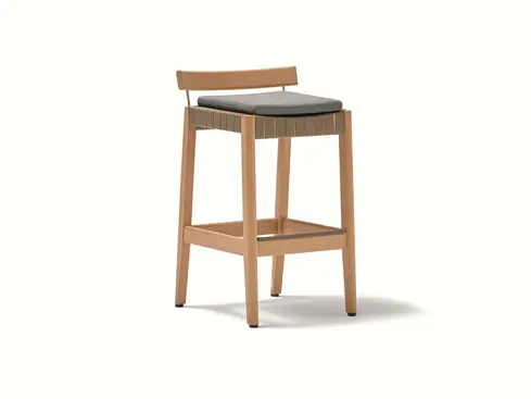 The KUBIK Bar Stool is defined by sober lines and a robust, weather-resistant structure. Crafted from TechTeak®, it is designed for intensive outdoor use while maintaining the appearance of natural teak.